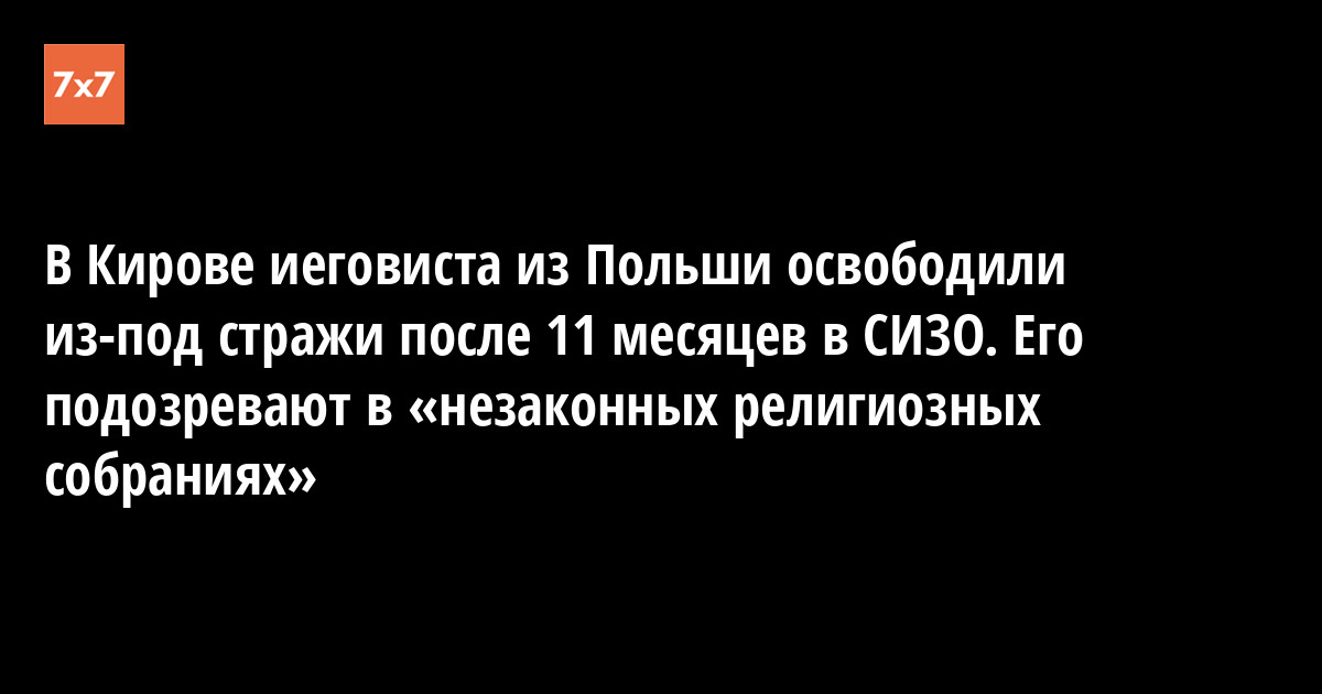 Кировский областной суд отменил постановление Первомайского районного суда о продлении срока содержания под стражей верующего свидетеля Иеговы* Анджея Онищука и освободил его в зале суда. Об этом 4 сентября сообщило издание «Идель. Реалии».
