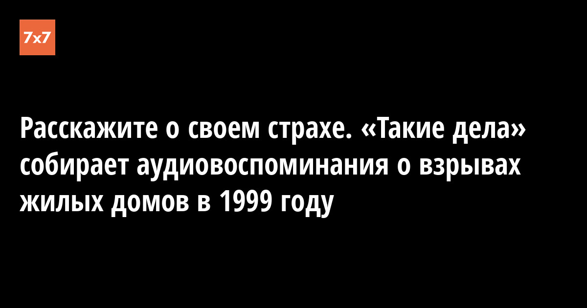 Издание «Такие дела» запустило кампанию «Расскажите о своем страхе», посвященную двадцатилетию терактов, произошедших с 4 по 16 сентября 1999 года в Буйнакске (Дагестан), Москве и Волгодонске (Ростовская область). Авторы предлагают россиянам вспомнить те эмоции и переживания, которые они испытывали, когда узнавали о терактах. О начале кампании «Такие дела» сообщили «7x7» по почте 4 сентября.