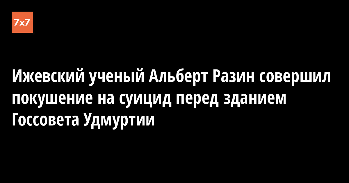 Заслуженный деятель науки Удмуртии, социолог Альберт Разин пришел на одиночный пикет к зданию Госсовета Удмуртии и совершил покушение на суицид. Он жив, но в тяжелом состоянии. Об этом сообщили 10 сентября в Facebook-сообществе «Ижевск, проснись».