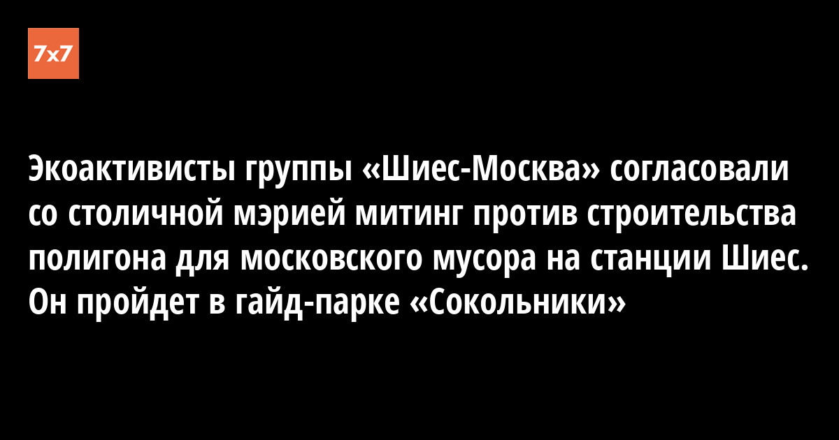 Московский митинг против строительства полигона для московского мусора на станции Шиес в Архангельской области и вывоза мусора из Москвы в другие регионы страны состоится в гайд-парке «Сокольники» 21 сентября. Активисты согласовали акцию с властями, они сообщили об этом 13 сентября в группе «Шиес – Москва! Против свалок!».