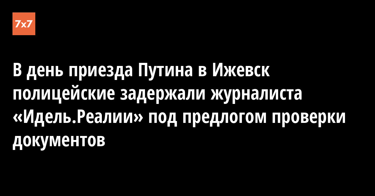 Во время визита президента Владимира Путина в столицу Удмуртии полицейские задержали журналиста издания «Идель. Реалии» Дарью Комарову. У нее около часа проверяли документы рядом с рамками на центральной площади Ижевска. Об этом она 19 сентября сообщила корреспонденту «7х7».