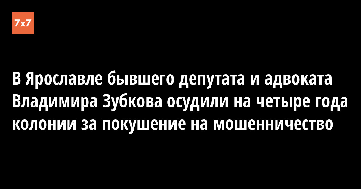 Ярославского адвоката и бывшего главу фракции «Яблоко» в муниципалитете города Владимира Зубкова суд приговорил к 4 годам колонии общего режима за покушение на мошенничество в особо крупном размере и фальсификацию документов для судебного процесса. Об этом 20 сентября сообщили «Ярновости».