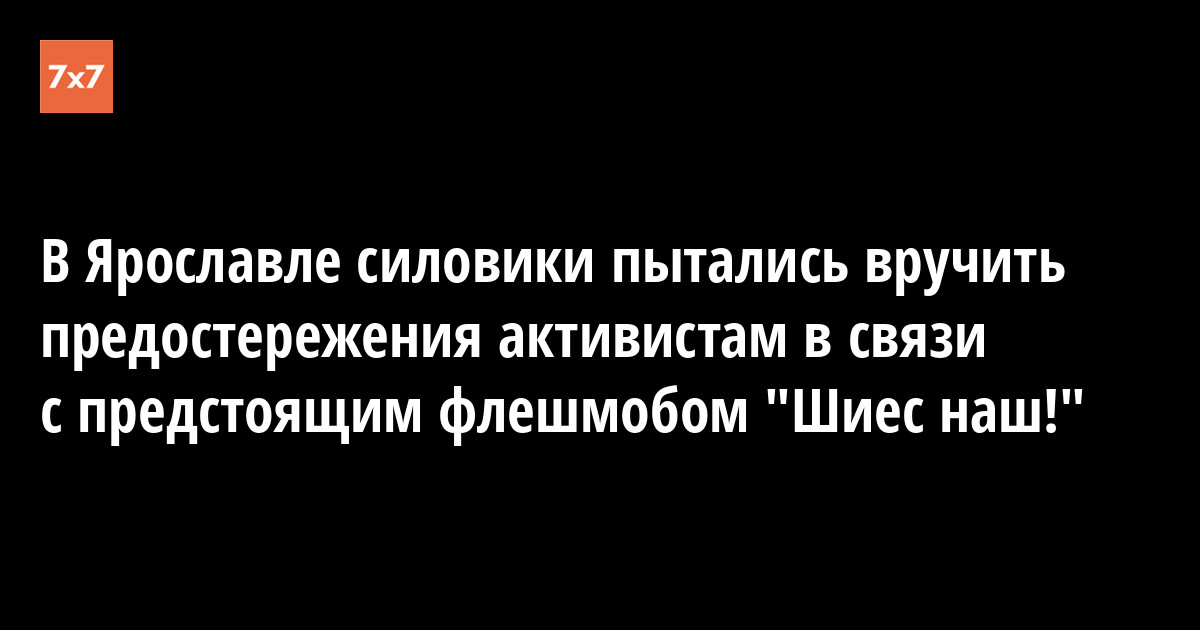 Представители Центра по противодействию экстремизму и прокуратуры приходили домой к активистам в Ярославле, чтобы вручить предостережения о недопустимости нарушений на акции, которую те запланировали провести 22 сентября в поддержку защитников Шиеса. Об этом 20 сентября рассказала «7x7» активистка Анна Головина.