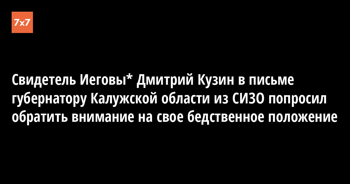 Свидетель Иеговы* из Калуги Дмитрий Кузин после двух месяцев в СИЗО написал письмо губернатору Анатолию Артамонову. Об этом 24 сентября сообщили в неофициальном Telegram-канале приверженцев этой религии.