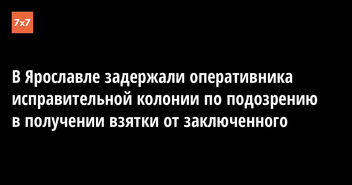В Ярославле задержали оперативного сотрудника исправительной колонии №1 (ИК-1) по подозрению в получении взятки от одного из осужденных. Об этом 26 сентября сообщила правозащитник Ирина Бирюкова, в пресс-службе Следственного комитета (СК) «7х7» подтвердили эти данные.