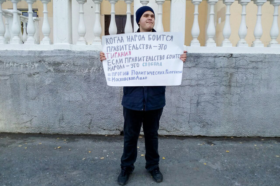 Артём Дворянцев вышел на пикет на центральную площадь Кургана 29 сентября одновременно с началом в Москве согласованного митинга против политических репрессий «Отпускай». На плакате было написано: «Когда народ боится правительства — это тирания. Если правительство боится народа — это свобода».