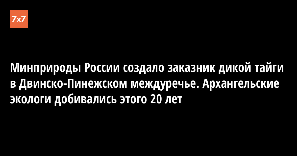 Замминистра Министерства природных ресурсов и экологии России Сергей Ястребов согласовал границы заказника в Двинско-Пинежском междуречье в Архангельской области. Местные экологи пытались спасти от вырубки эти девственные леса еще с середины девяностых, в 1999-м их поддержал Гринпис России, а в 2003-м — Всемирный фонд дикой природы (WWF). Конечная площадь заказника получилась значительно меньше, чем территория, которую предлагали экологи. Об этом 1 октября сообщил «7x7» медиакоординатор лесных проектов Гринпис России Василиса Ягодина.