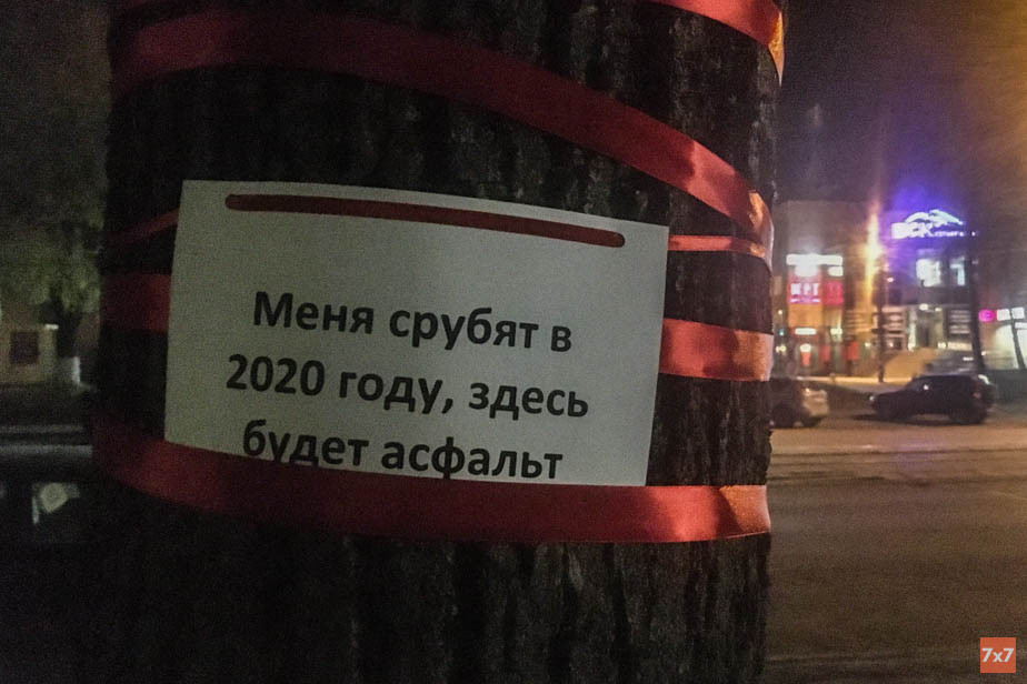 — Мы взяли план улицы из проекта и строго в соответствии с ним пометили деревья красной лентой. И сразу стало видно, насколько все будет грустно. Мы добавили таблички от имени деревьев, какую пользу они тут приносили — сколько пыли и тяжелых металлов поглощали, насколько в жару снижали температуру и т. д. Люди подходили и не верили, что это правда, особенно мамы из яслей переживали, у которых прямо под окнами окажется заездной карман и паркинг, — рассказала «7х7» Ирина Ефимова.