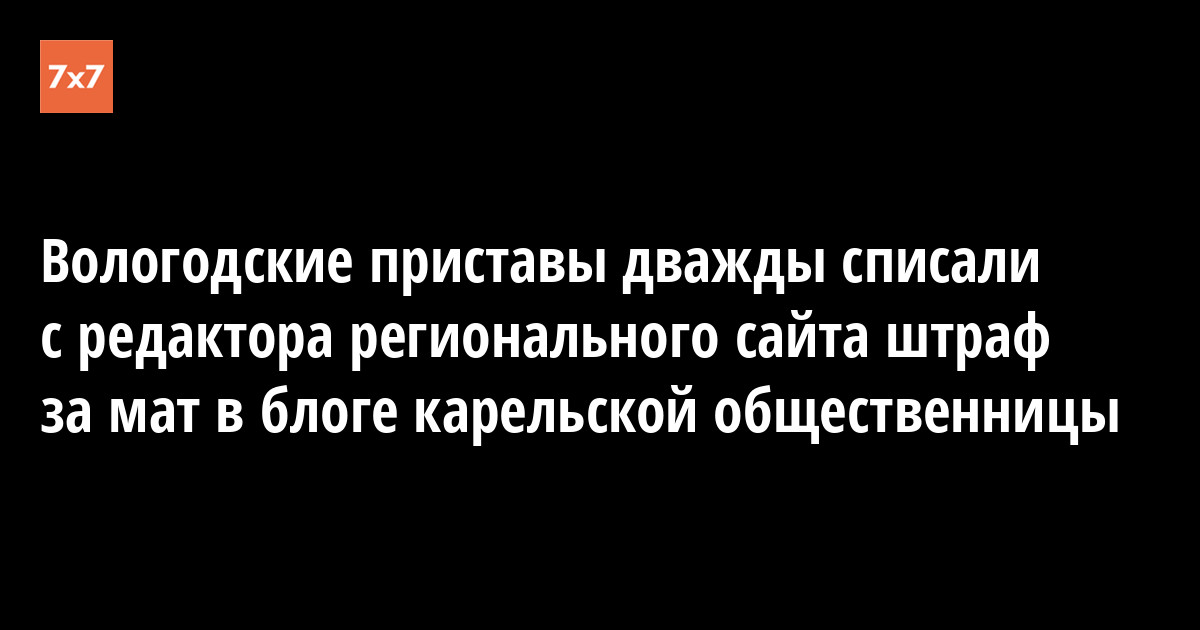Редактора вологодского издания NewsVo.ru оштрафовали на 5 тыс. руб. за матерное слово в блоге карельской общественницы. Судебные приставы дважды сняли со счетов журналистки эту сумму. Об этом она 23 октября написала на своей странице в Facebook.