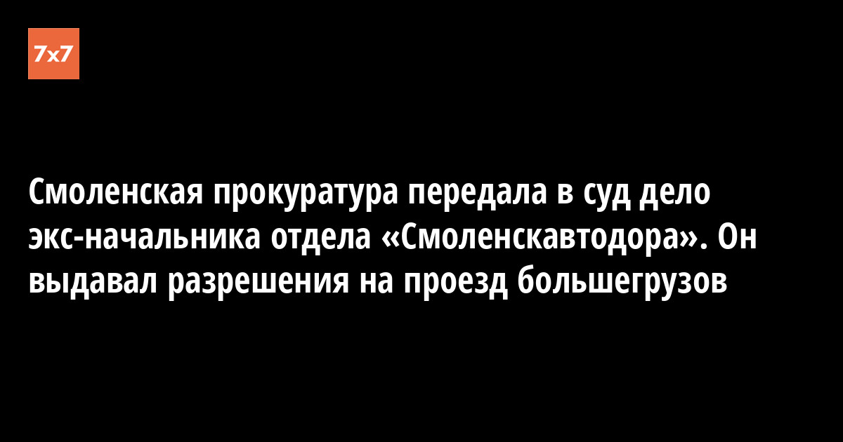 Прокуратура Смоленской области утвердила обвинительное заключение и отправила в суд дело сотрудника «Смоленскавтодора». Гособвинение считает, что экс-начальник за деньги выдавал предпринимателям разрешения на проезд тяжелых автомобилей по областным дорогам. Об этом 18 ноября сообщила «Комсомольская правда» со ссылкой на пресс-секретаря областной прокуратуры.