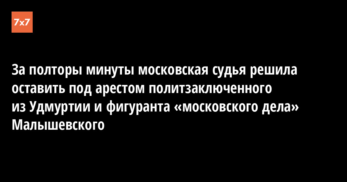 Мосгоросуд признал законным продления ареста на полгода фигуранту «московского дела» Эдуарду Малышевскому, которого обвиняют в насилии над полицейским. Судья, по словам слушателей, находилась в совещательной комнате около полутора минут. Об этом 20 ноября сообщил политик Дмитрий Гудков в своем Telegram-канале.