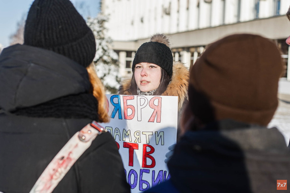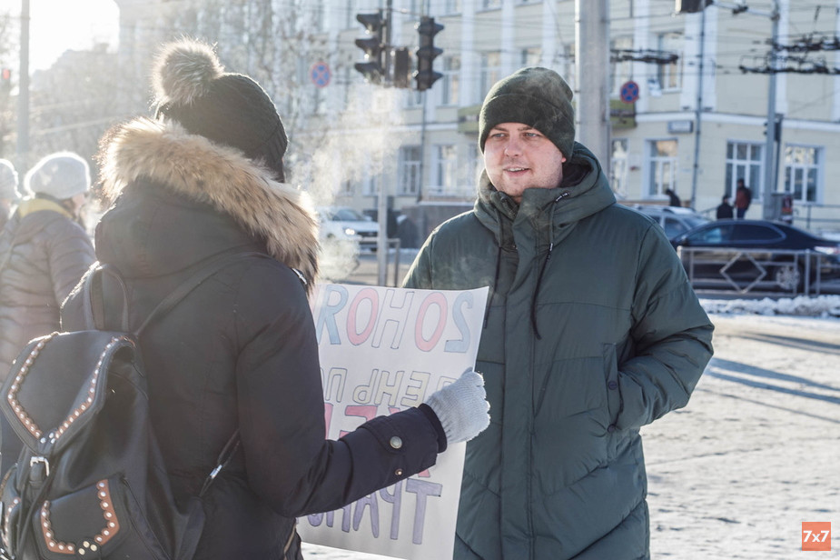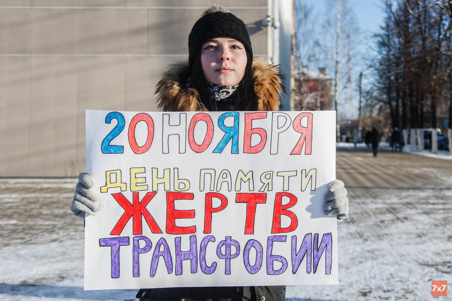 В 12:00 Полина Ключарова встала с плакатом «20 ноября День Памяти жертв трансфобии» напротив здания администрации города. За час, что она стояла в пикете, к ней подходило несколько человек с вопросами: