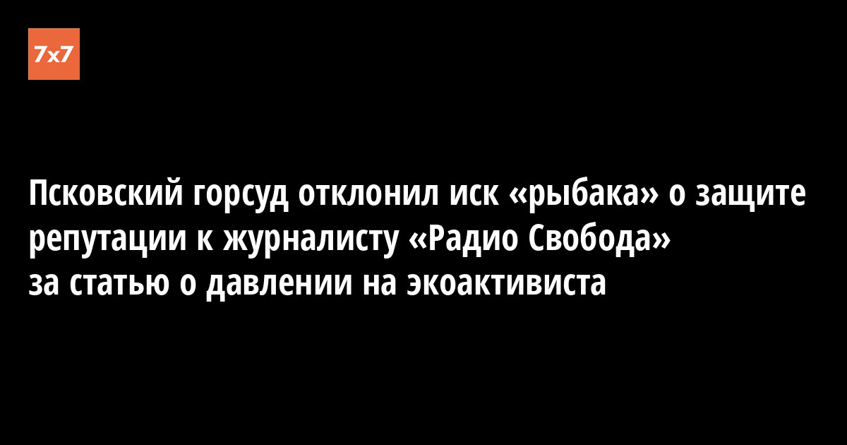Псковский городской суд отклонил иск великолукского «рыбака» Игоря Кузнецова о защите его репутации к "Радио Свобода" и журналисту Людмиле Савицкой. Об этом корреспонденту «7х7» рассказала 24 ноября Людмила Савицкая.