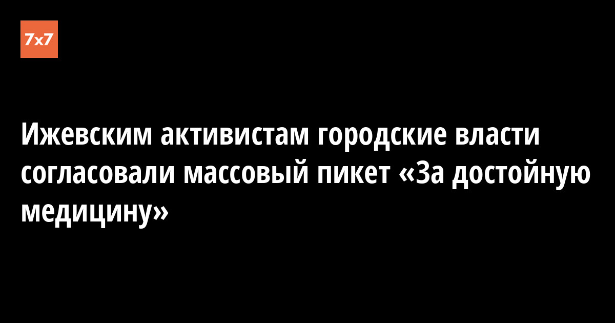 Для участия во всероссийской акции профсоюза «Альянс врачей» активисты из Удмуртии заявили пикет против оптимизации в здравоохранении и недоступности бесплатной медицины. Им согласовали пикет. Об этом 29 ноября сообщили в ижевской команде Алексея Навального.