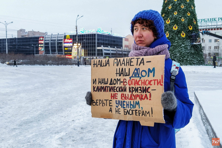 В итоге активистка вышла с плакатом на площадь Пять Углов. В руках она держала картонный плакат с текстом: «Наша планета - наш дом. И наш дом в опасности. Климатический кризис - не выдумка! Верьте ученым, а не блогерам».
