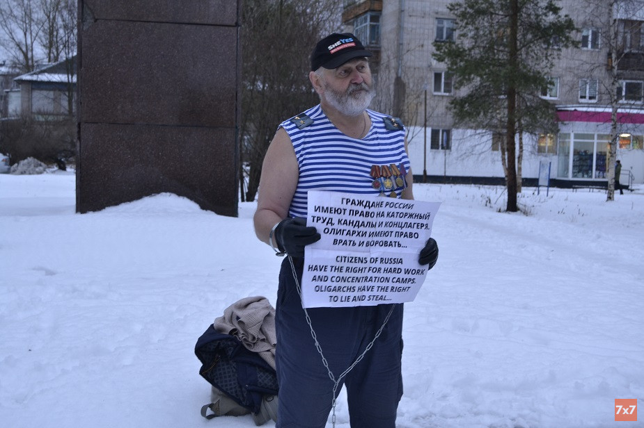 Сразу после массового пикета в поддержку защитников Шиеса, который 30 ноября прошел в Архангельске, подполковник в отставке, ветеран военной службы Александр Иевлев устроил акцию в аллее у памятника Ленину. Пенсионер заковал себя в самодельные кандалы в знак протеста против полицейского произвола. Иевлев держал в руках плакат: «Граждане России имеют право на каторжный труд, кандалы и концлагеря. Олигархи имеют право врать и воровать». Подобные акции и голодовки Иевлев проводит с 2012 года в Москве, Ярославле и Архангельске.