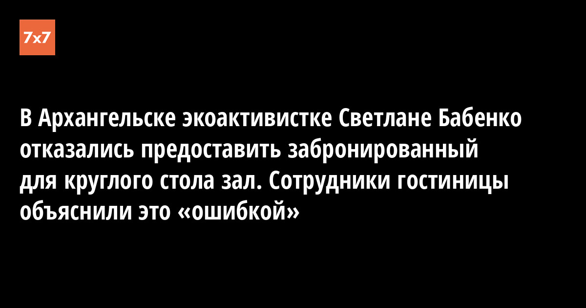 Круглый стол с председателем инициативной группы «Чистая Урдома» Светланой Бабенко не состоялся в конференц-зале гостиницы «Беломорская» из-за "ошибки" сотрудников. За пять минут до начала мероприятия активисты узнали, что зал, забронированный заранее, оказался занят. Об этом 11 декабря сообщил корреспондент "7x7", который пришел освещать встречу.