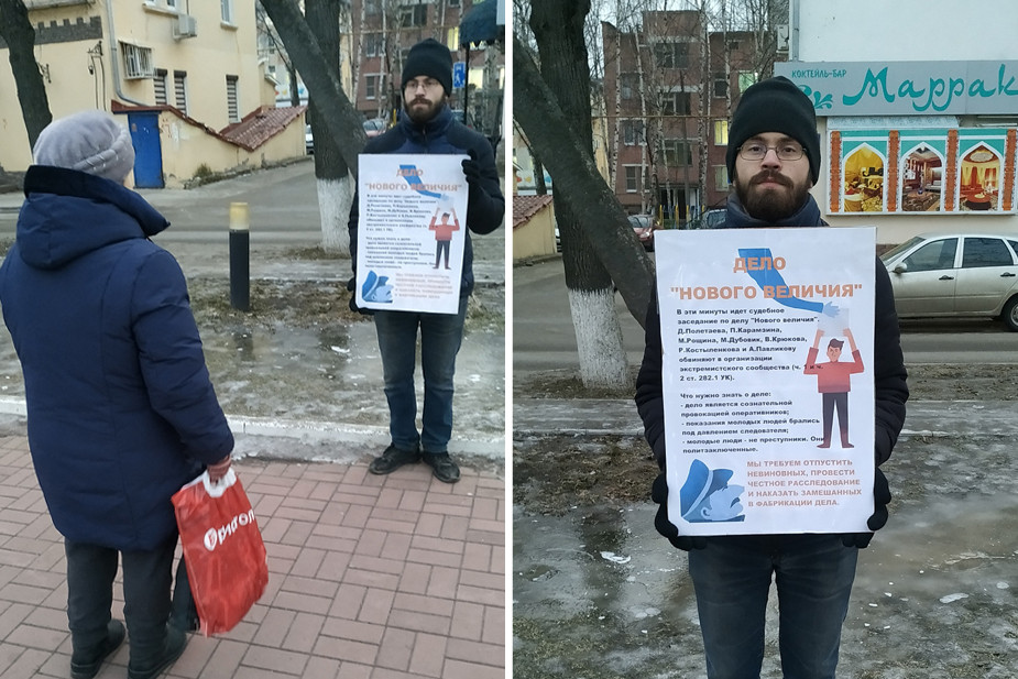 Член незарегистрированной Либертарианской партии России (ЛПР) Анна Щеголева и сторонник партии Евгений Иванов 11 и 12 декабря выходили на одиночные пикеты в поддержку обвиняемых по «московскому делу» и делу «Нового величия». Об этом активисты ЛПР сообщили корреспонденту «7х7».