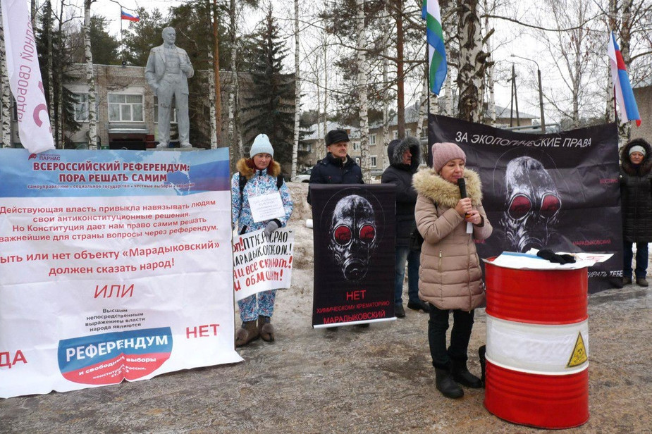 На митинге против переоборудования объекта «Марадыковский» под утилизацию отходов в поселке Мирном участники потребовали от президента России Владимира Путина отменить постановление правительства о создании комплекса. Об этом 15 ноября сообщил «7x7» активист Вадим Ананьин.