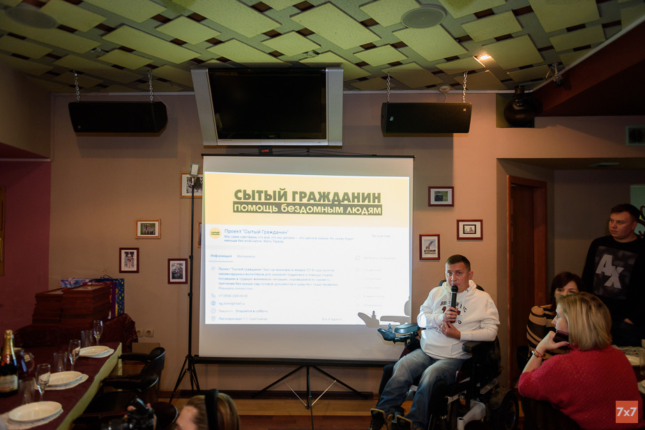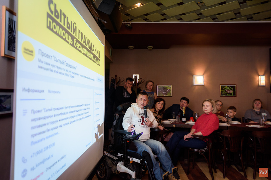 Руководитель проекта Илья Костин на встрече рассказал о развитии проекта с момента его основания в январе 2018 года. За два года открыто три точки раздачи еды бездомным, выдано более 7 тыс. порций обедов, около 70 человек получили одежду и медикаменты. Свое желание заниматься благотворительностью он объяснил в разговоре с корреспондентом «7х7»: