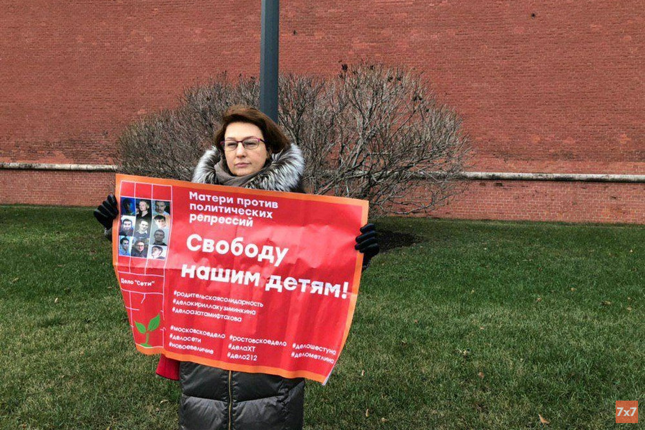 Тверской районный суд Москвы оштрафовал на 10 тыс. руб. мать подсудимого по делу «Сети»* Дмитрия Пчелинцева за одиночный пикет на Кремлевской набережной. Об этом «7х7» сообщили 18 декабря сама Светлана Пчелинцева и ее адвокат Оксана Маркеева.