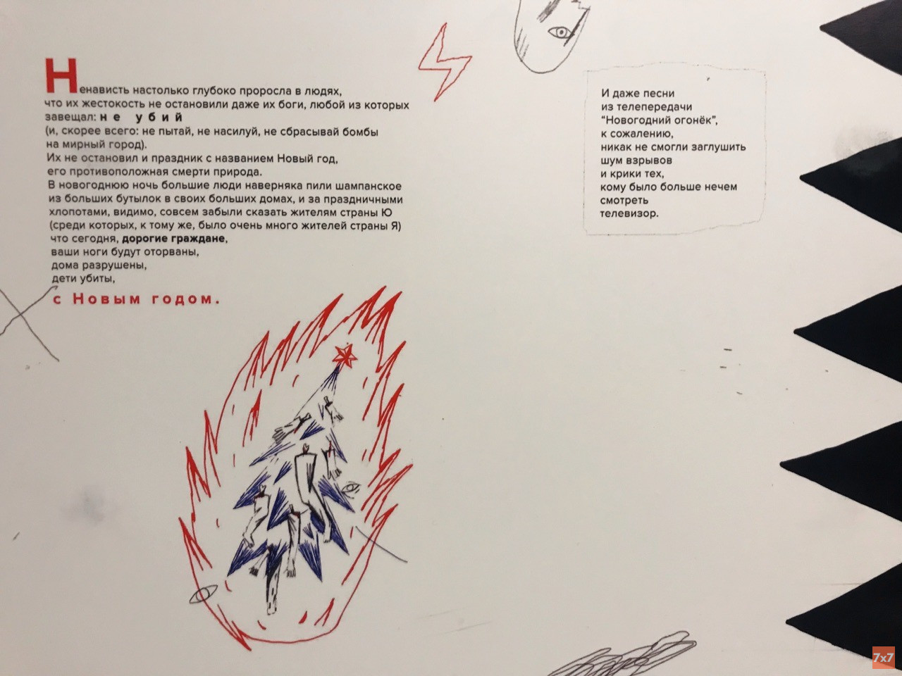 Есть также комиксы-размышления, среди которых — антимилитаристское высказывание художницы Дианы Кавелиной «Книга, которая ничего не изменит».