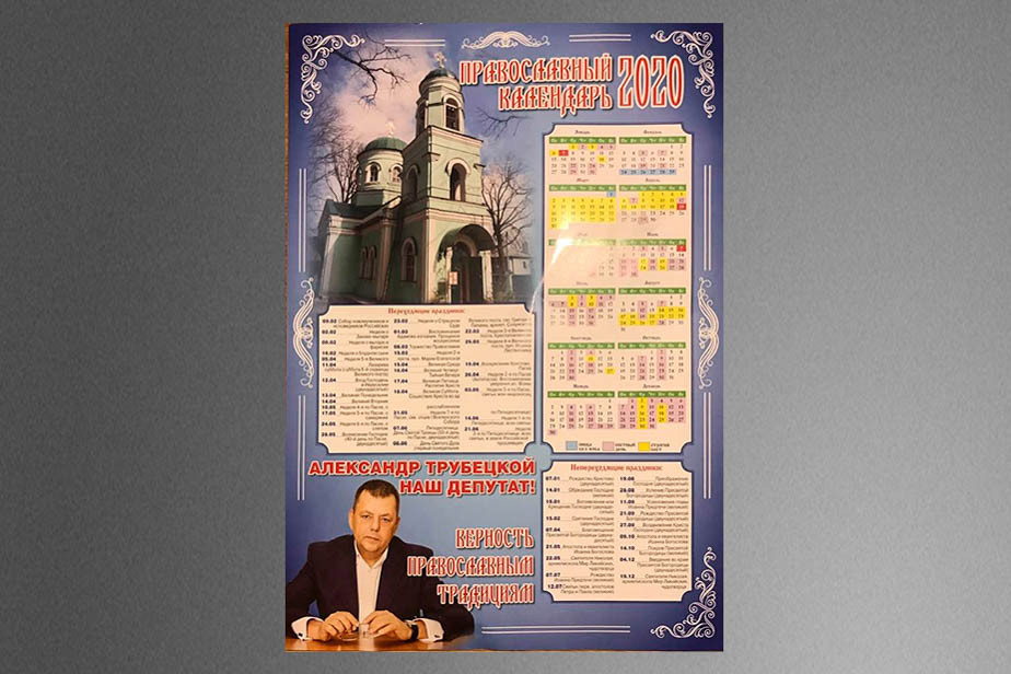 В общеобразовательной школе №20 в Воронеже участникам детского конкурса новогодних игрушек подарили «православные» календари от депутата городской думы из фракции «Единой России». Об этом в соцсетях 24 декабря написала мать одного из учеников.