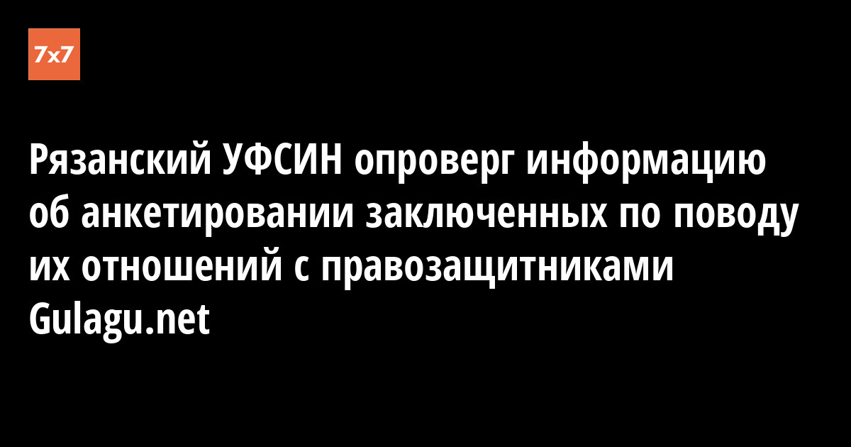 Начальник УФСИН России по Рязанской области Валерий Семенов в ответе на запрос «7x7» опроверг факт проведения анкетирования среди заключенных ИК-5, посвященного их взаимоотношениям с правозащитниками проекта Gulagu.net. В середине ноября об анкетировании сообщил осужденный экс-мэр Рязани Валерий Рюмин, отбывающий наказание в этой колонии.