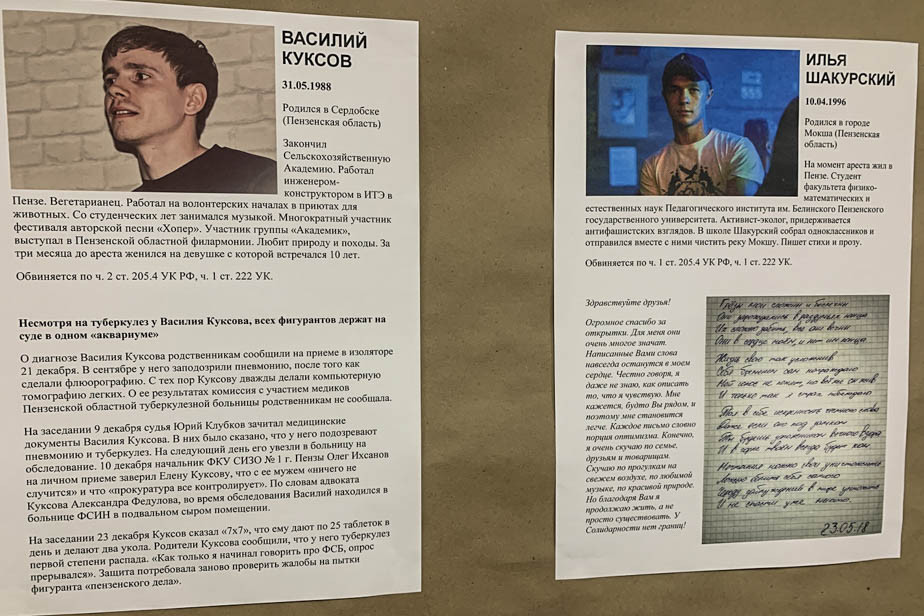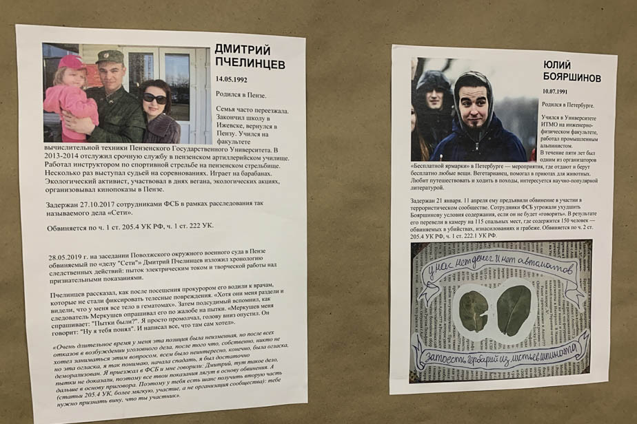 Организаторы выставки сообщили, что она будет работать в будни с 14:00 - 18:00, в воскресенье с 14:00- 19:00. По воскресеньям родители Юлия Бояршинова будут рассказывать пришедшим на выставку о судебном процессе по делу «Сети»*.