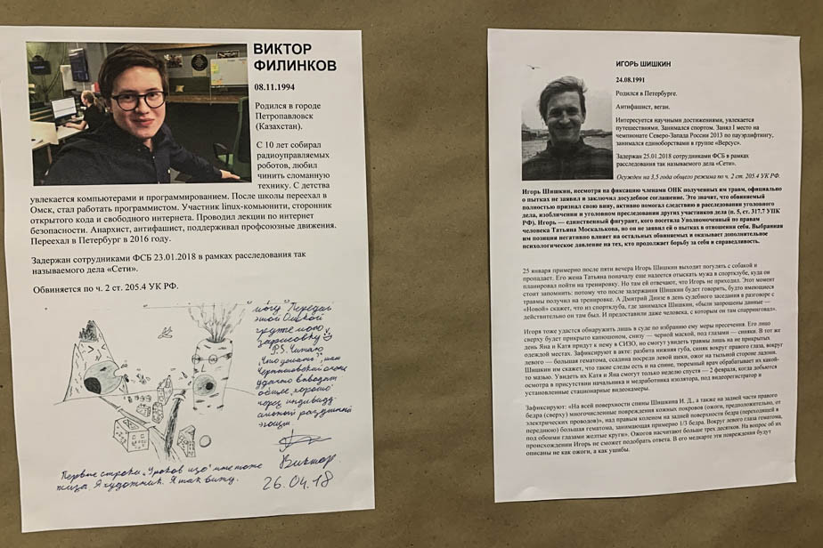 Активисты петербургского «Молодежного Яблока» открыли в офисе реготделения партии выставку, посвященную делу «Сети»* - документы с судов, информация о фигурантах дела и связанные с ними фотографии, посвященные процессу материалы СМИ. Об этом корреспонденту «7х7» рассказал 13 января председатель петербургского «Молодежного Яблока» Евгений Тимановский.