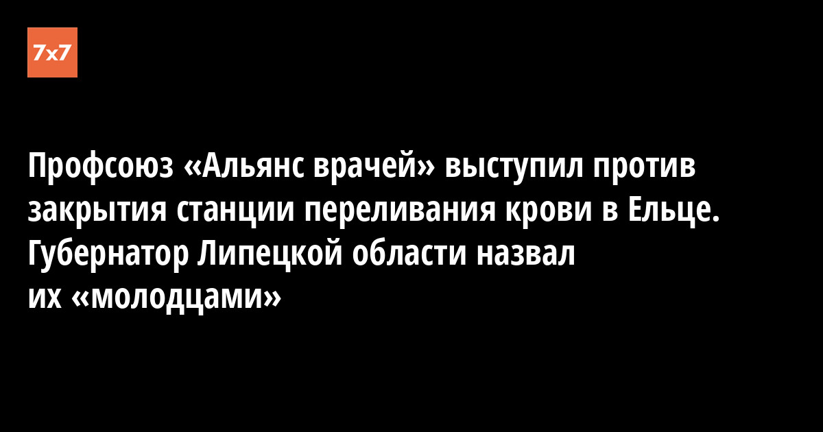 Руководители независимого профсоюза медработников «Альянс врачей» приехали в Елец, чтобы поддержать работников Елецкого филиала Липецкой станции переливания крови, который планируют закрыть для экономии. Губернатор Игорь Артамонов написал в Instagram, что они «молодцы». Об этом 13 января «7x7» сообщил пресс-секретарь союза Иван Коновалов.