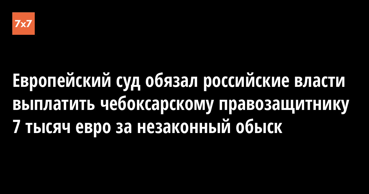 Европейский суд по правам человека присудил компенсацию в 7 тыс. евро юристу из Чувашии Денису Федорову из-за обыска, который провели у него в 2007 году сотрудники полиции. О решении ЕСПЧ «7x7» рассказал чебоксарский правозащитник Алексей Глухов, решение суда было опубликовано 4 февраля.