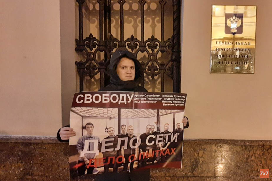 С 18:00 пикетчики переместились к зданию Генпрокуратуры РФ. Там они продолжили одиночные пикеты с теми же плакатами в руках. Поблизости дежурил полицейский автозак. К одному из участников пикета подошел рогвардеец и пытался узнать его личные данные. В ответ тот рассказал ему о деле «Сети»*.