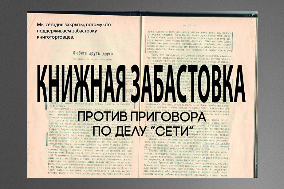 Мы не можем промолчать. И как граждан, и как профессионалов нас тревожит судьба нашей страны, культуры, которым мы служим. Через неделю после суда, в понедельник 17 февраля, наши магазины не будут работать. Мы встанем в одиночные пикеты в поддержку осужденных по так называемому делу „Сети“*. Надеемся, что друзья и посетители простят нас за неудобство, но по-другому поступить мы не можем».