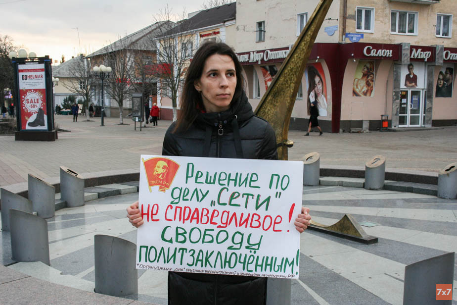 В Белгороде коммунисты организовали два одиночных пикета в поддержку осужденных по делу «Сети»*. Они планировали провести 19 февраля три пикета, но во время второго активистов пригласили в областное УМВД для беседы, сообщил корреспондент "7х7".