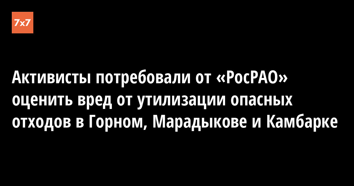 Требование подписали активисты из Саратовской, Кировской, Нижегородской областей, Башкирии и Удмуртии. Они против строительства объектов по утилизации отходов I–II классов опасности на базе бывших заводов по уничтожению химического оружия «Горный» (Саратовская область), «Марадыковский» (Кировская область) и «Камбарка» (Удмуртия).