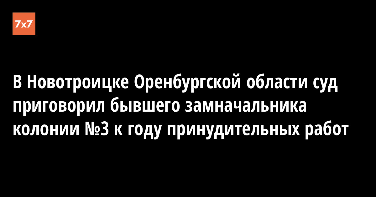 Судья Новотроицкого городского суда Юлия Вакулина приговорила бывшего замначальника колонии №3 Евгения Матыцина к одному году лишения свободы, заменив это наказание одним годом принудительных работ с удержанием 15% зарплаты в доход государства. Об этом 25 февраля сообщила пресс-служба Комитета против пыток.
