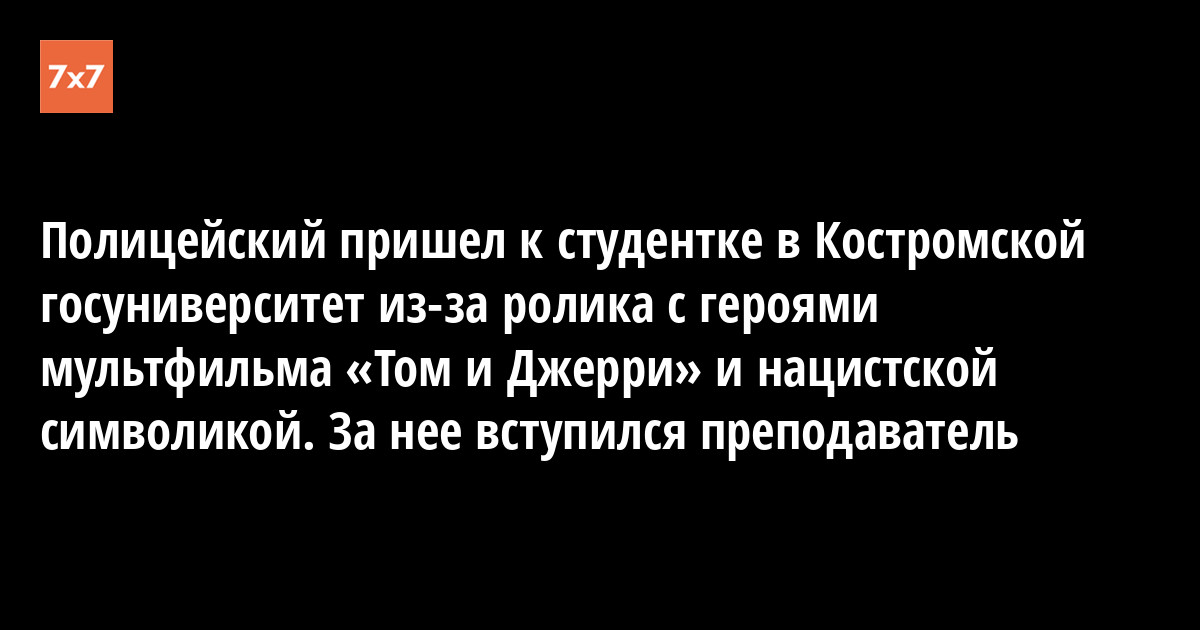 В Костроме лейтенант полиции пришел в Костромской государственный университет и потребовал от активистки Ирины Шумиловой проехать с ним в участок из-за сохранения во «ВКонтакте» сатирического ролика про войну СССР и Третьего Рейха. За студентку вступилась преподаватель и отказалась отпускать свою ученицу без повестки. Эту информацию 4 марта подтвердила «7x7» сама Шумилова.