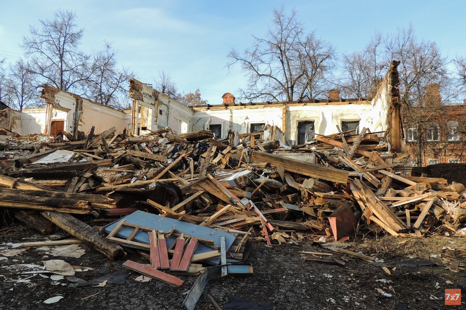 — Снос начался с января, — сказал «7х7» Михаил Кириков. — Во дворе появились груды развалин и бревна, крышу снесли. По сути, ни одной стороны [здания] не осталось, кроме этой, – только фасад. Мы никак не ожидали, что сломают именно этот дом. На этой улице, по сути, что ни дом – то объект культурного наследия. Эта улица примыкает к [центральной] Соборной площади.