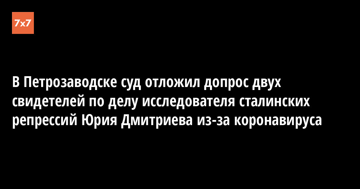 Петрозаводский городской суд продлил арест исследователю сталинских репрессий Юрию Дмитриеву на три месяца и отказался допрашивать двух свидетелей из-за опасений за здоровье обвиняемого, который может заразиться коронавирусом. Об этом 23 марта сообщил корреспондент «7x7».