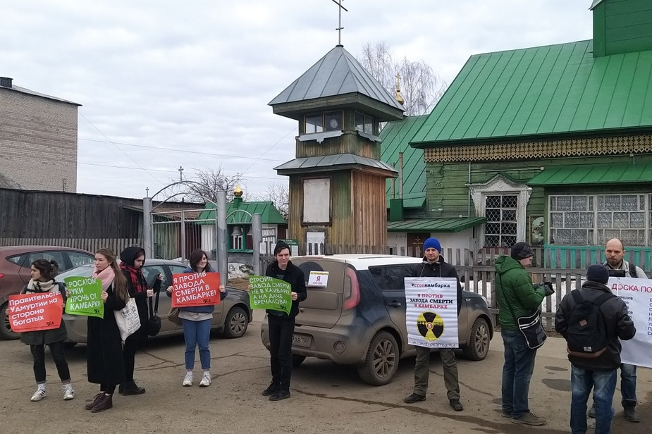 Жители города Камбарка в Удмуртской Республике 28 марта вышли на пикет против размещения производственного комплекса по утилизации отходов I и II классов опасности. Прямую трансляцию с акции устроили администраторы группы «Камбарка информационная» в «Одноклассниках».