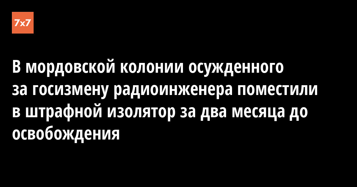 Бывшего научного сотрудника московского НИИ поместили в штрафной изолятор (ШИЗО) мордовской исправительной колонии №5 за два месяца до освобождения. Правозащитники направили запросы в Федеральную службу исполнения наказаний (ФСИН). Об этом 30 марта сообщили юристы «Команды 29».