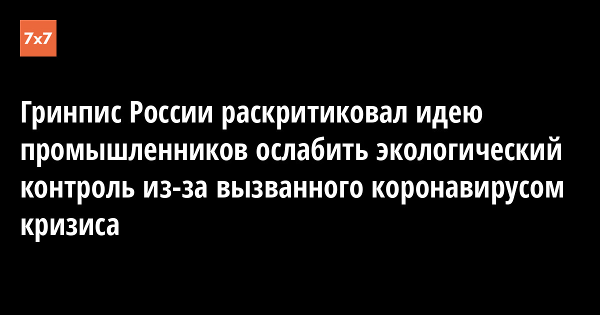 Экологическая организация «Гринпис России» создала петицию с требованием не отказываться от природоохранных мер и экологического контроля промышленных организаций. Об этом 24 апреля «7x7» сообщили представители Гринписа.