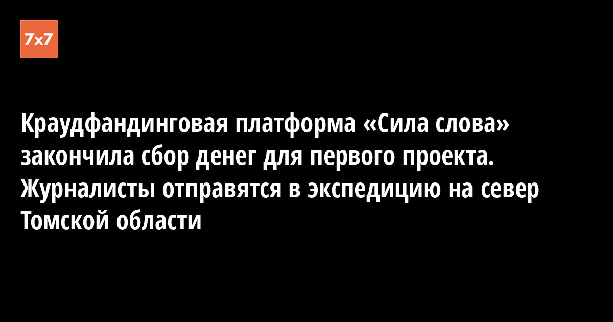На краудфандинговой платформе для журналистов и медиа «Сила слова» появился первый проект, под который получилось полностью собрать финансирование. Журналисты издания «ТВ2» отправятся на север Томской области, в бывший Нарымский край. Об этом сообщил 28 апреля Альянс независимых региональных журналистов (АНРИ).