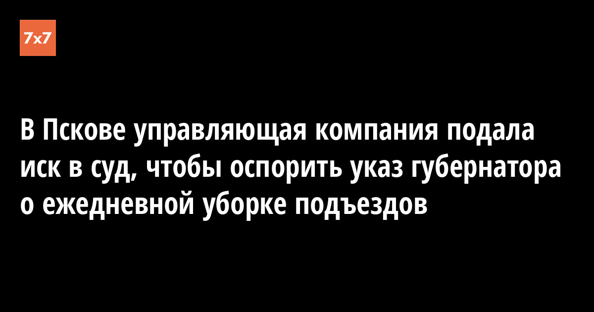 Псковская управляющая компания «Пароменское» потребовала через суд признать незаконным пункт о ежедневной влажной уборке подъездов в указе губернатора Михаила Ведерникова. В компании сказали, что им не оплачивают дополнительную работу, обусловленную пандемией коронавируса. Об этом «7х7» рассказал член Общественной палаты региона Сергей Корсаков.