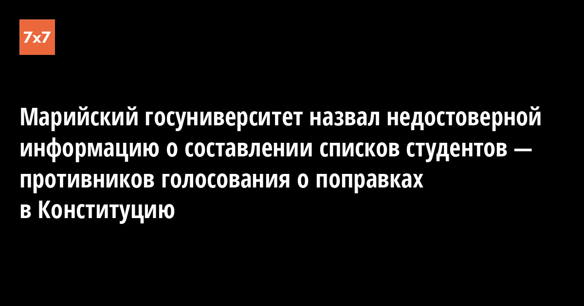 Марийский государственный университет в своем официальном сообществе в соцсети «ВКонтакте» опубликовал официальное заявление в ответ на распространение в СМИ информации про сбор списков студентов, которые выступают против голосования за поправки в Конституцию.