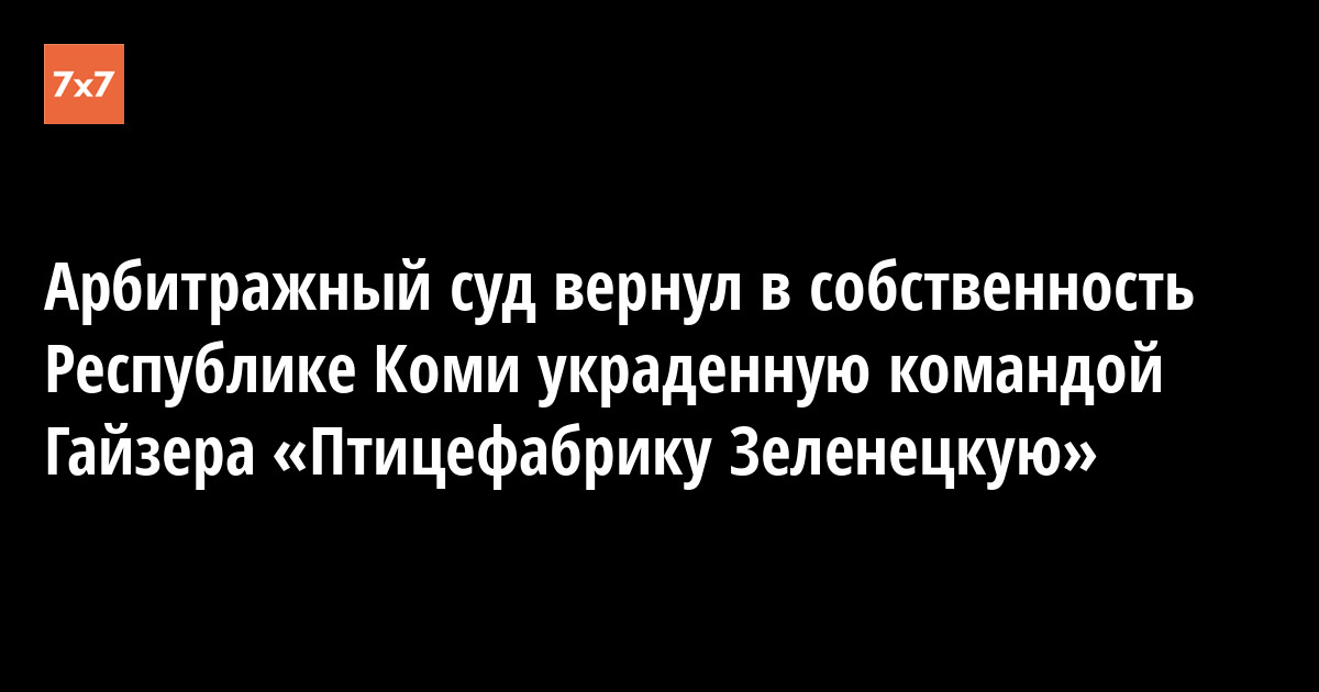 Арбитражный суд Коми удовлетворил иск республиканского прокурора, требовавшего полностью вернуть региону права на владение птицефабрикой «Зеленецкая», которой незаконно завладела команда осужденного экс-главы Вячеслава Гайзера. Об этом 10 июня сообщила пресс-служба прокуратуры.