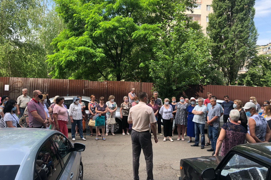 Жильцы собрались во дворе 13 июня, позвали на встречу сотрудников мэрии и попросили помощи у депутата от КПРФ Игоря Цевменко. К ним пришли заместитель мэра Белгорода Василий Голиков и застройщик Александр Лазарев.