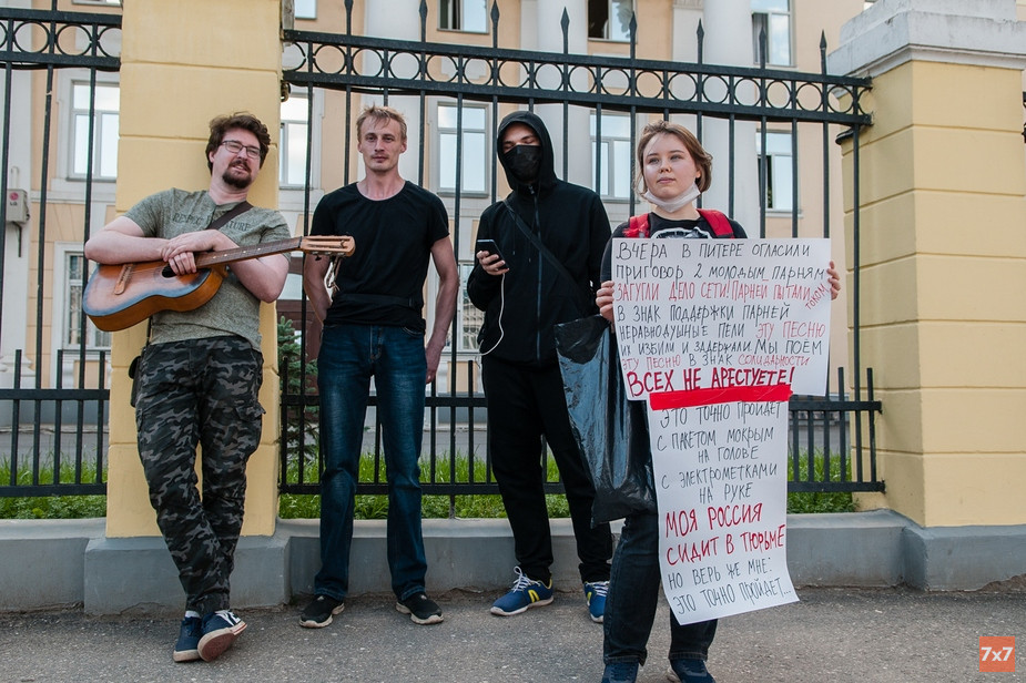 — Это наша реакция на приговор по делу «Сети»* и задержание людей после оглашения приговора. Они просто пришли поддержать фигурантов дела «Сети»*, пели песни, а их избили и задержали. В том числе избили молодую женщину — жену Юлия Бояршинова. Это вызывает возмущение у всех здравомыслящих людей, и мы пришли выразить свое мнение по этому поводу.