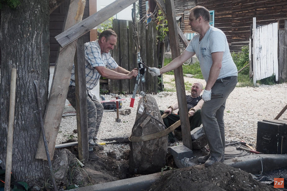 Извлечение из земли артефакта продолжалось около шести часов, поскольку рязанцы работали ручными инструментами. Ломами, топорами и домкратом они «выкорчевали» камень из земли и остатков старого асфальта, ручной лебедкой приподняли его над землей, подсыпали щебенки и установили на прежнее место. Раньше тумба едва выступала над землей, добровольцы приподняли ее примерно на 80 см.
